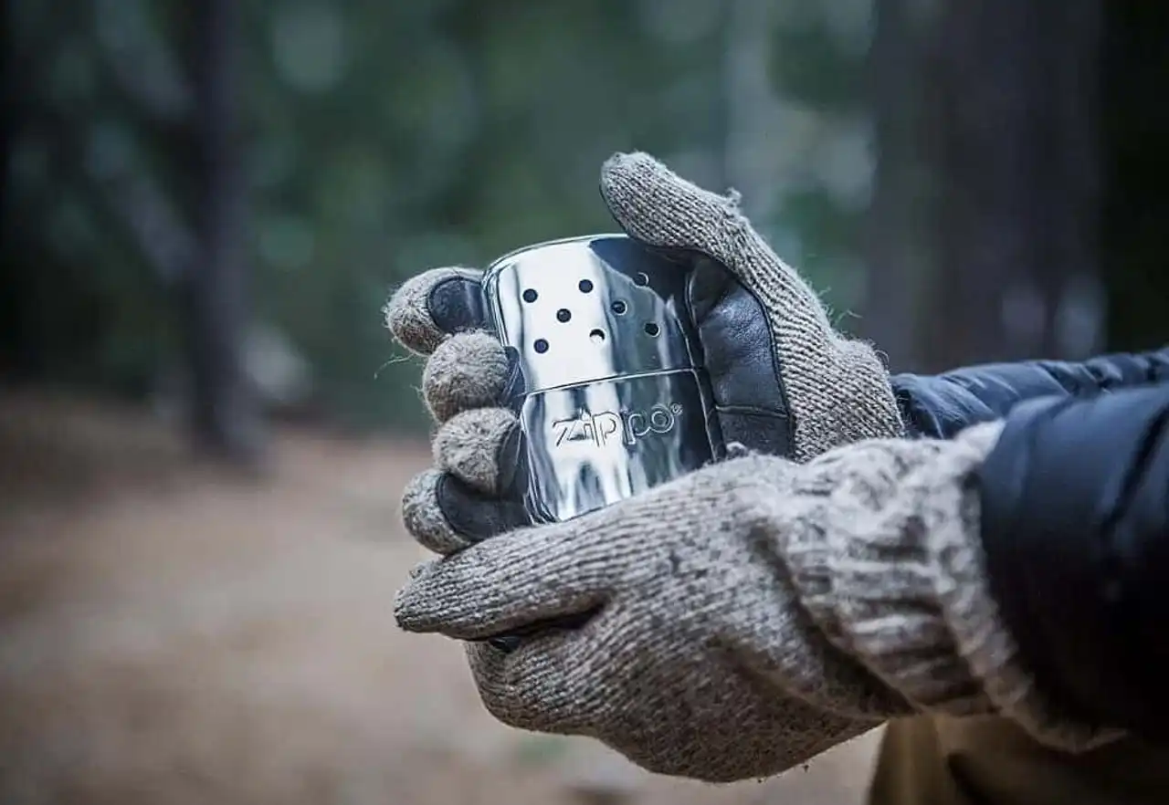 A hand-heated zippo